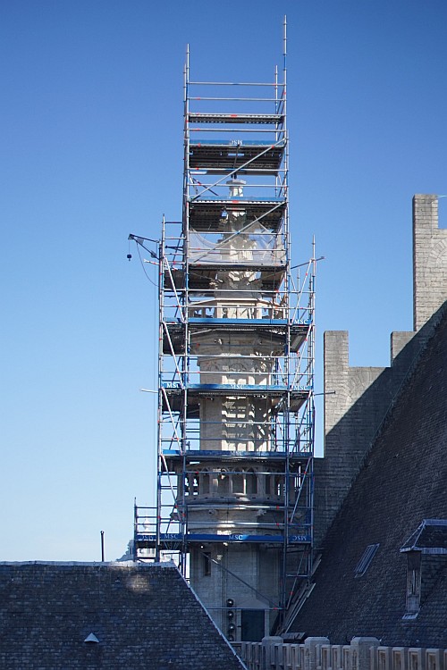vue globale sur les tourelles de l'hotel de ville en echaffaudages
